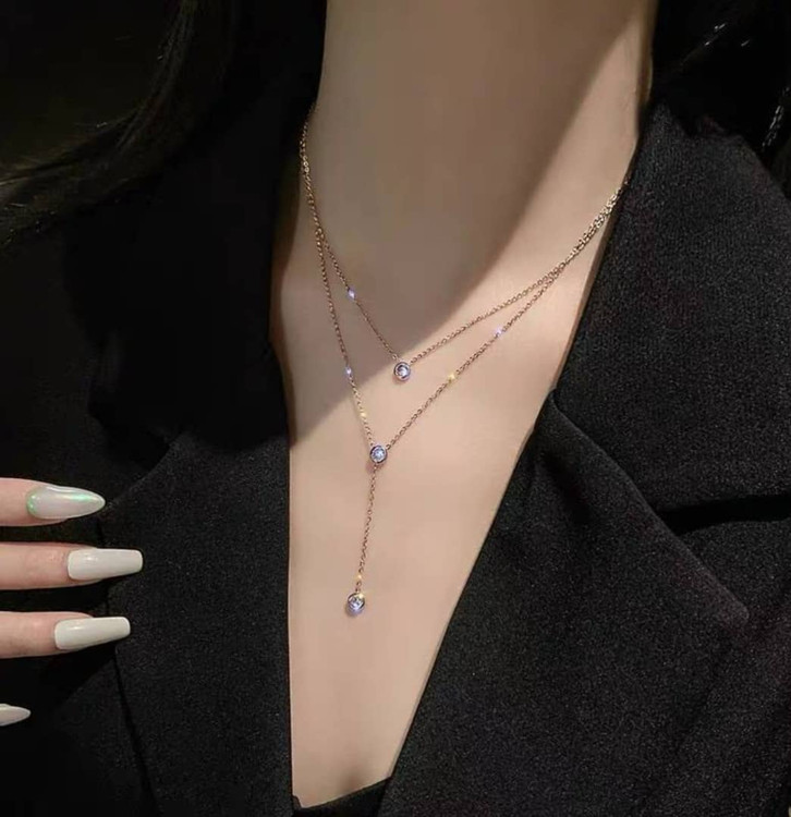 💎گردنبند وارداتی دو لاین، آویزدار💎
